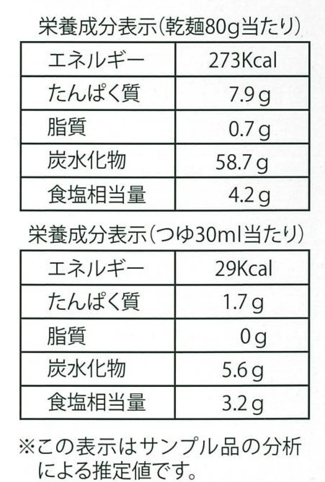 | 内容量 | 麺80g×1束、つゆ30ml×1ヶ |