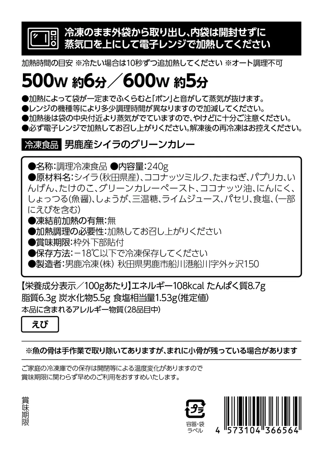 [水産加工品]男鹿産シイラのグリーンカレー 240g