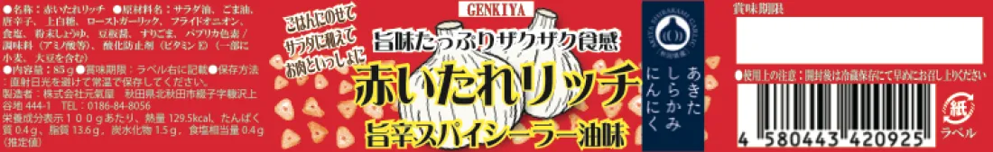 [発酵食品・調味料]赤いたれリッチ 旨辛スパイシーラー油味